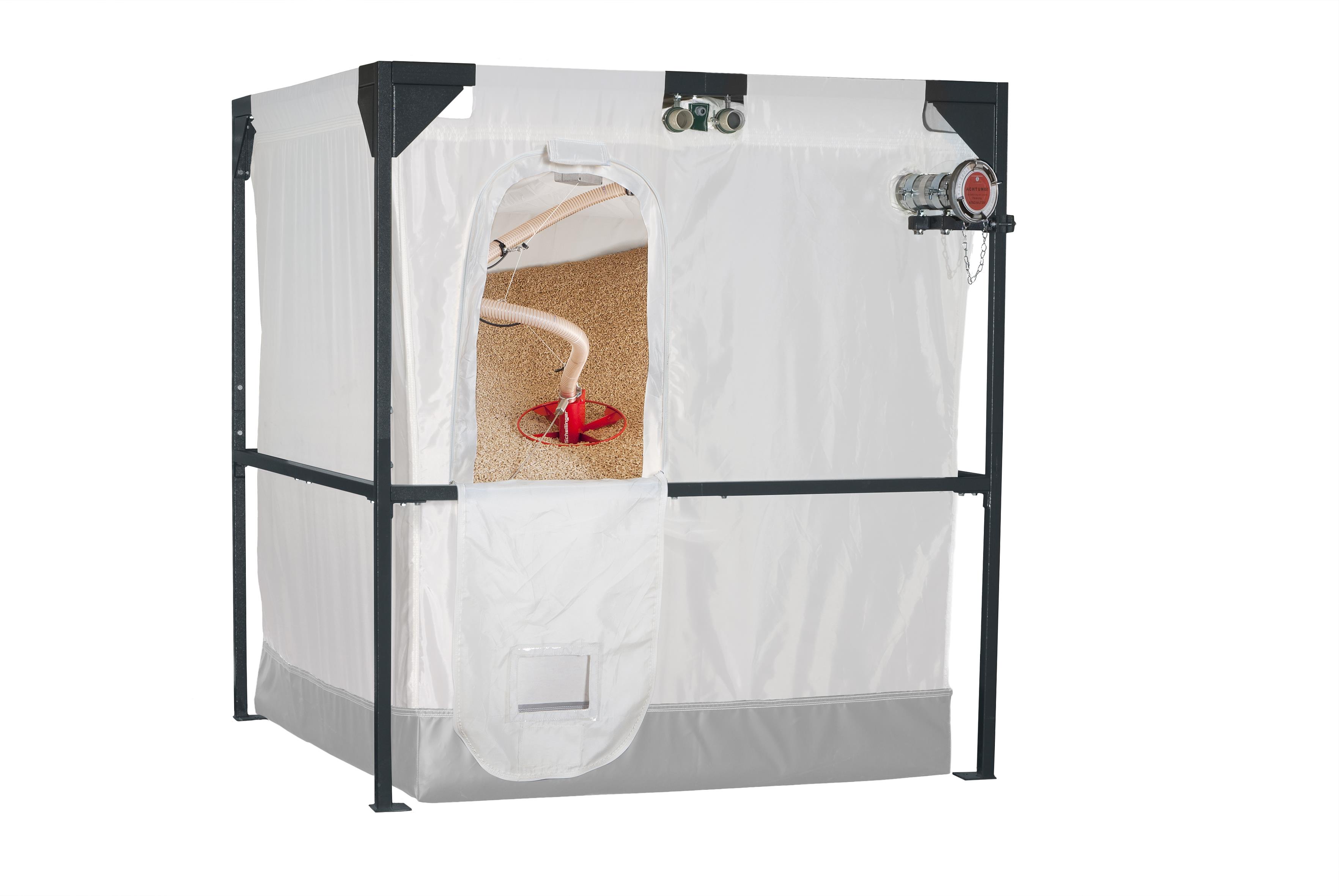 Im verpackten Zustand passt der gesamte Tank auf eine Europalette. Aufgebaut fasst er je nach Ausführung bis zu 7 Tonnen Pellets.