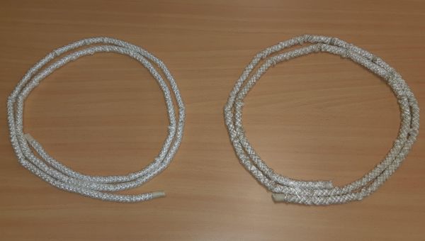 Dichtschnurset für iQ 1.0 - 2.5-Serie bestehend aus einer Kesseldeckeldichtung aus Keramikfaser und einer Kesseltürdichtung aus Keramikfaser verstärkt mit Messingdraht.